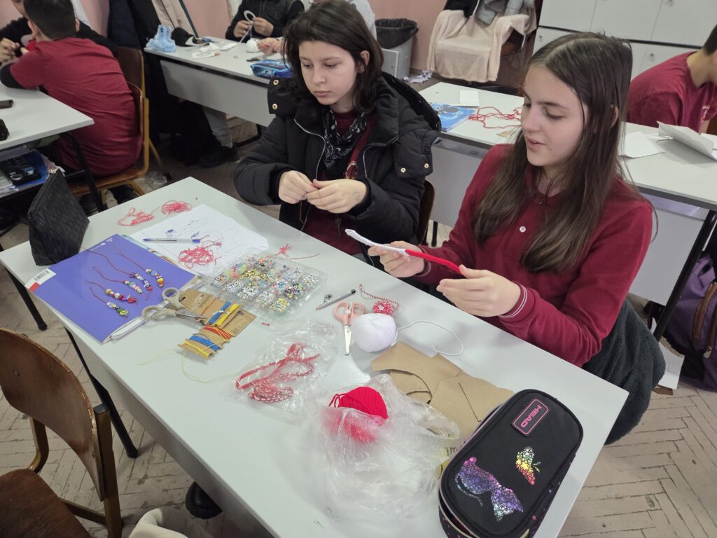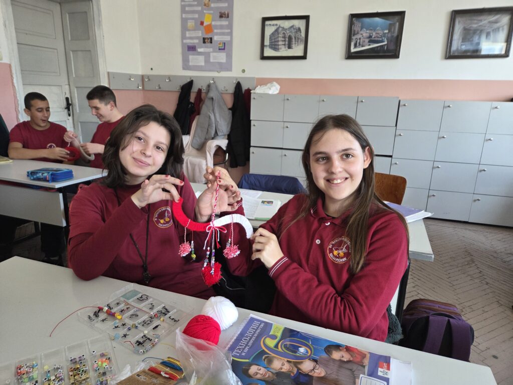 С много старание и въображение учениците съчетаха традиционни елементи с модерни идеи, превръщайки червено-белите конци в малки произведения на изкуството. Работата им показа не само усвоени практически умения, но и предприемачески дух, екипност и отговорност.
