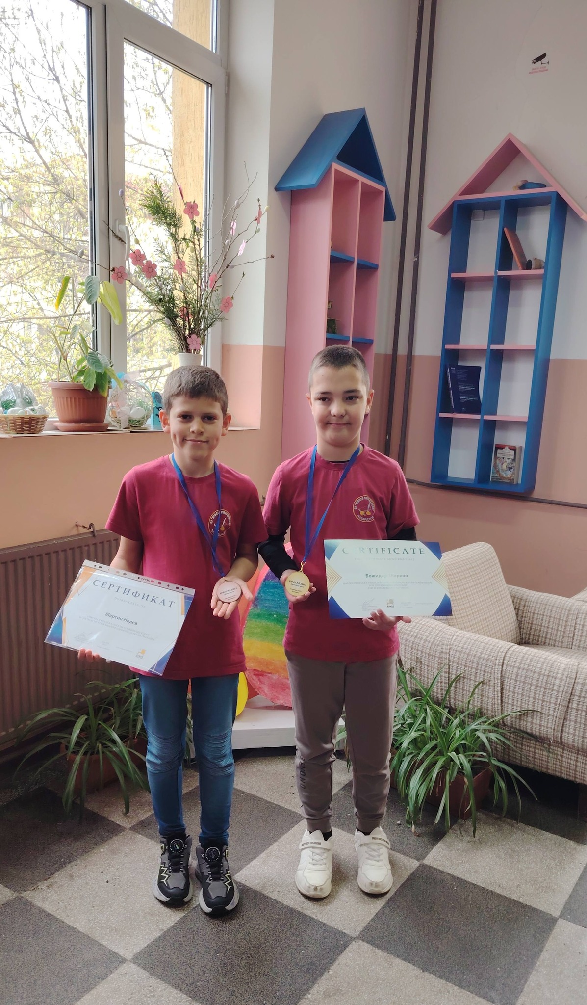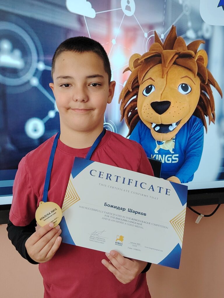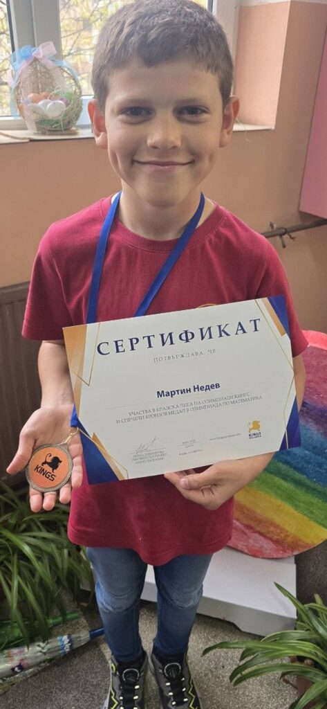 Нашите ученици, Божидар Шарков от 3 А клас и Мартин Недев от 4 Б клас, получиха своите Медали и Сертификати от Международната олимпиада „Кингс“- Кралска лига.